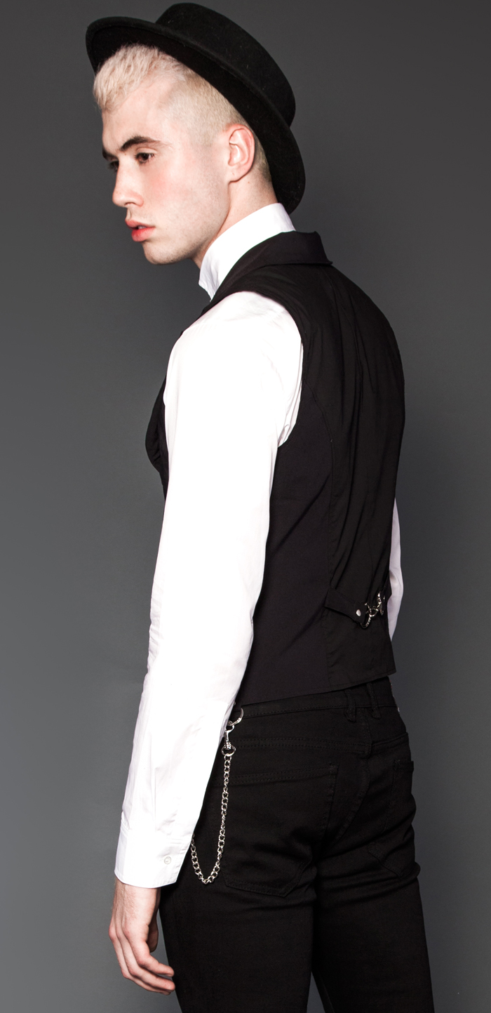 Tobias (drums) wearing Michelle's Technocracy Vest -